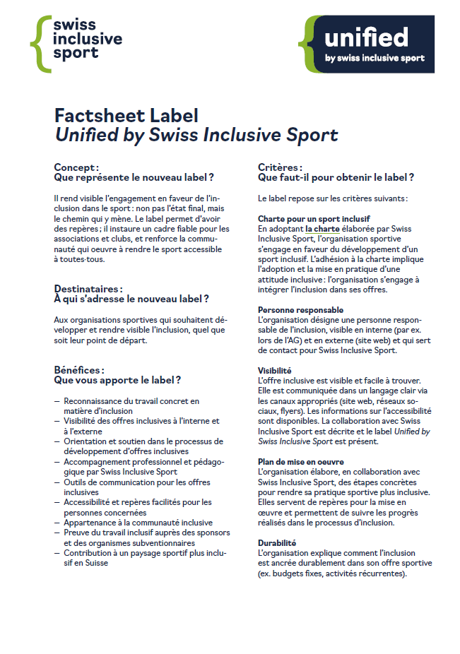 Le BBC Veveyse-Oron est labellisé « unified » par Swiss Inclusive Sport.Notre club s’engage en faveur de l’inclusion dans le monde sportif et associatif. Pour que tou·te·s puissent profiter des bienfaits de la pratique sportive !